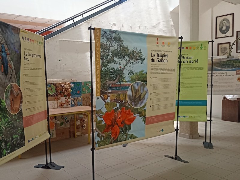 Pour cet événement, une exposition sur l’histoire des Hommes et des Espèces à La Réunion a été empruntée à l’AVE2M et installée dans le hall.