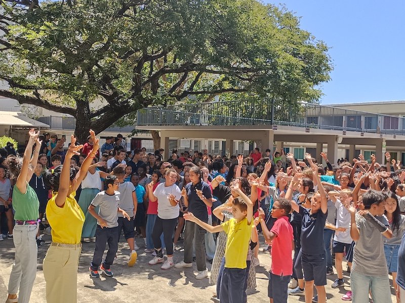 Les éco-volontaires et l’équipe du projet Écologie Intégrale ont convié la communauté éducative à un moment festif : un flash mob pour clôturer cette Semaine Européenne du Développement Durable.